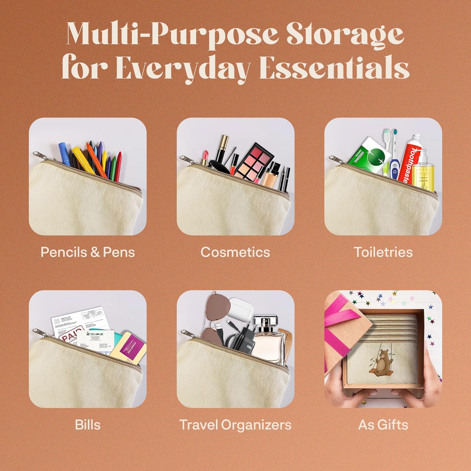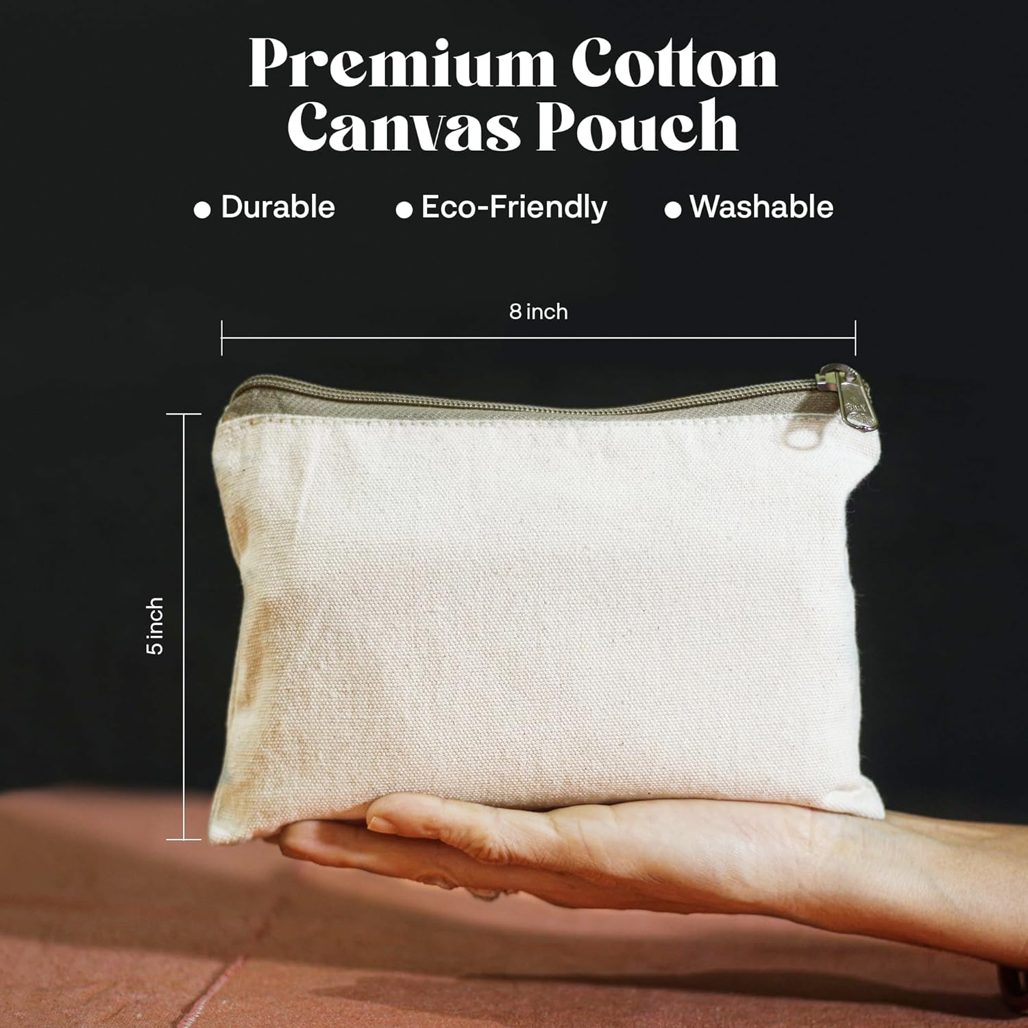- Multi-Purpose Use: This 5" x 8" cotton canvas pouch is perfect for organizing cosmetics, toiletries, pencils, pens, or even as a coin purse. Great for travel, daily use, and keeping your essentials neat and accessible.