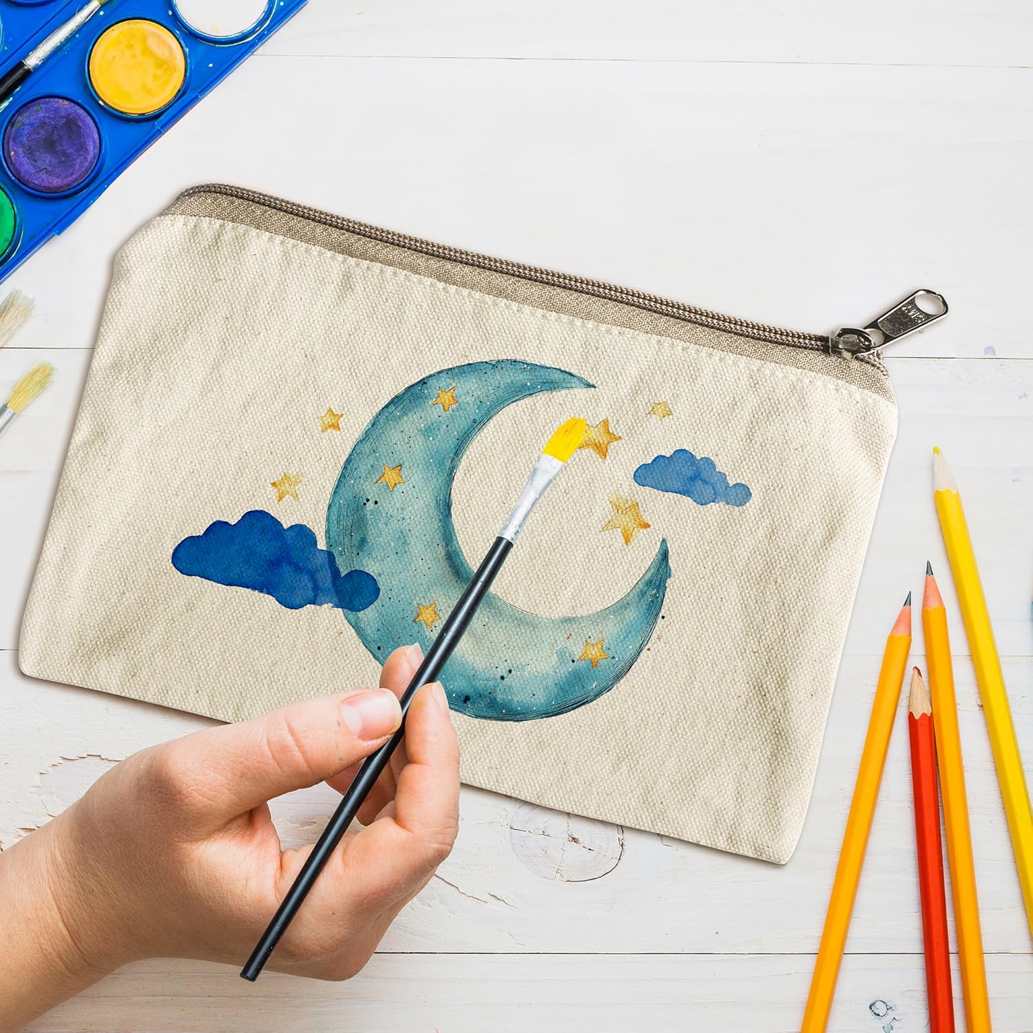 ATRANI Cotton Canvas Pouch, Blank DIY Makeup Bag, Multi-Purpose Pencil Case, Craft Storage, Travel Toiletry Bag with Zip (5x8 inch) DIY Customizable, Washable & Reusable – Value Pack Options (6)