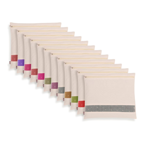 Atrani Pack Of 10 Cotton Saree Clothes Bags/Covers/Poches For Storage With Zip Closure (16 X 14 Inches, Beige)