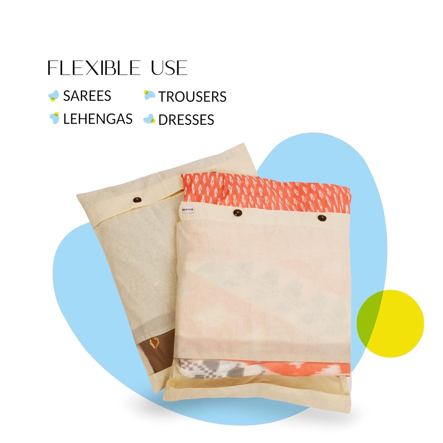 - The covers are not limited to packing bag for sarees only, as shown in photo it can be use for variety of cloths.