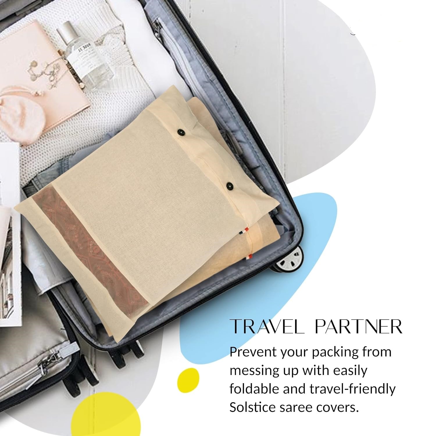 Atrani Cotton Saree Cover/Saree Bags/Clothes Covers (Set Of 12) Of 16 X 14 (Inches) For Clothes Storage Bag, Travelling, Wardrobe Organizer With Mesh/Window (12) - BEIGE